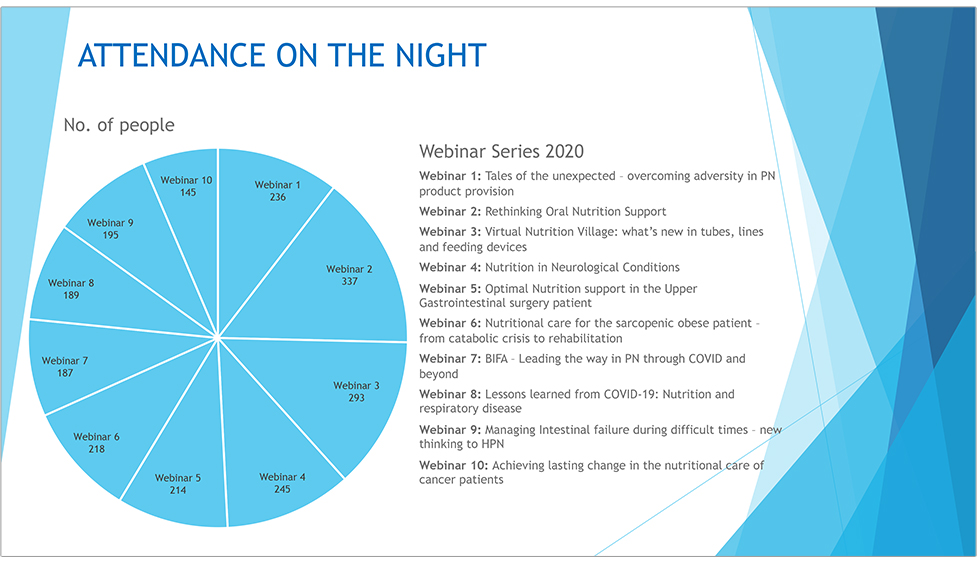 The BAPEN webinar series was a huge success with over 1,100 registrations and evening audiences exceeding 200 delegates on some nights, dialling in from over 14 different countries worldwide.