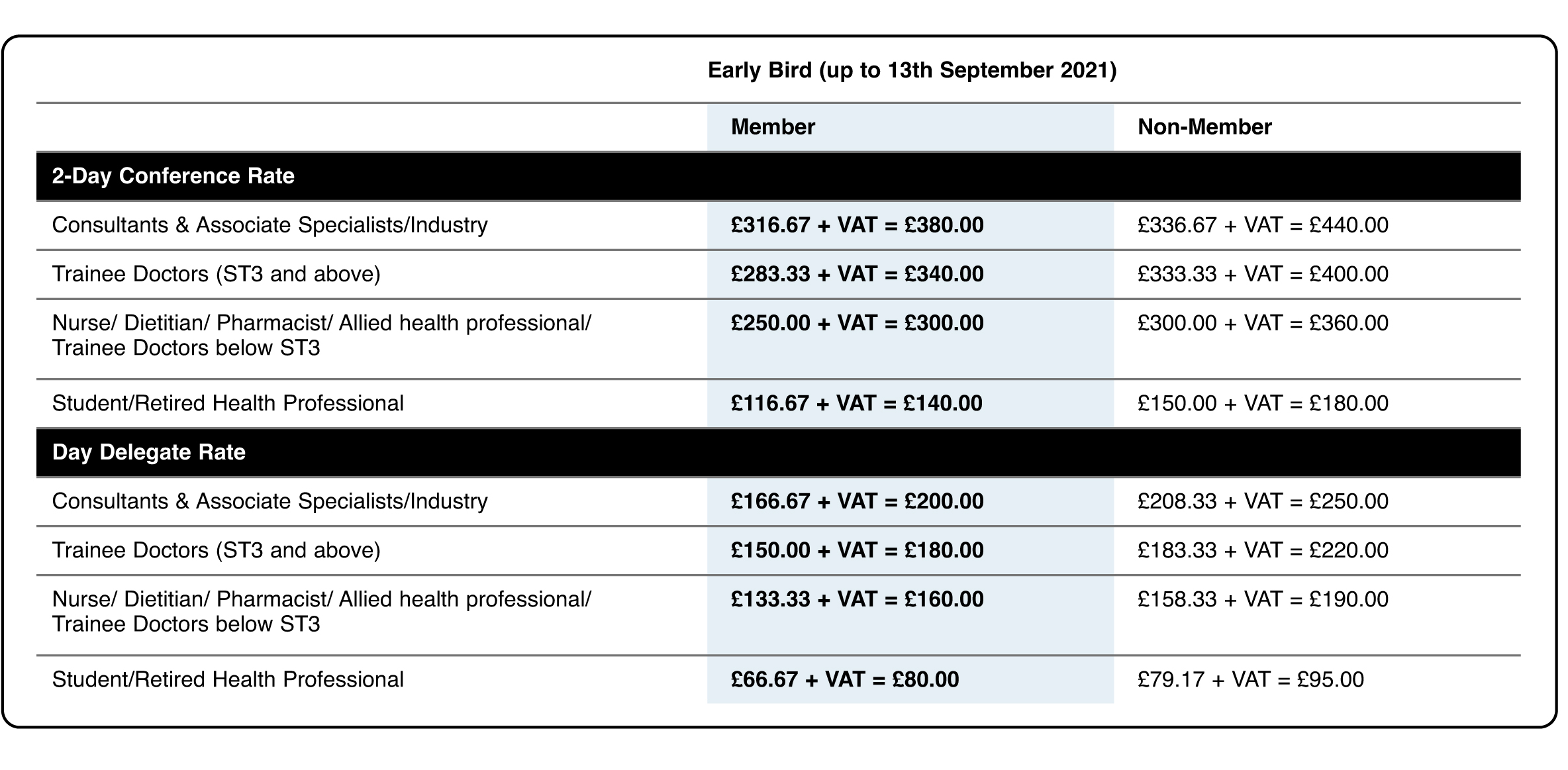 The BAPEN Members Rate is available if your BAPEN subscription has been received at the time of receiving your registration form. The Student Rate is available to all pre and post graduate Students.