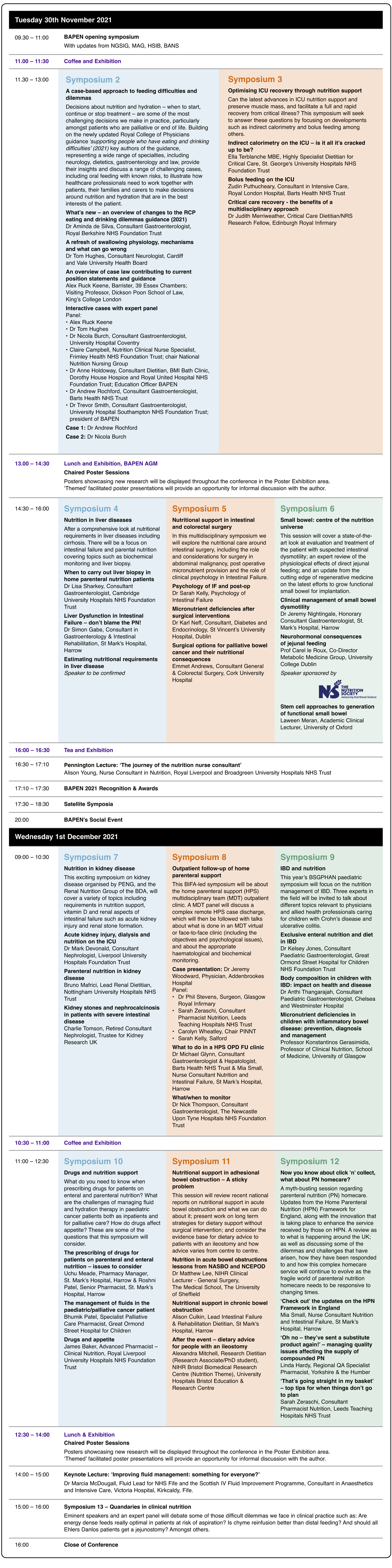 The BAPEN Annual Conference is a multi-disciplinary event organised by representation from each of the following organisations: