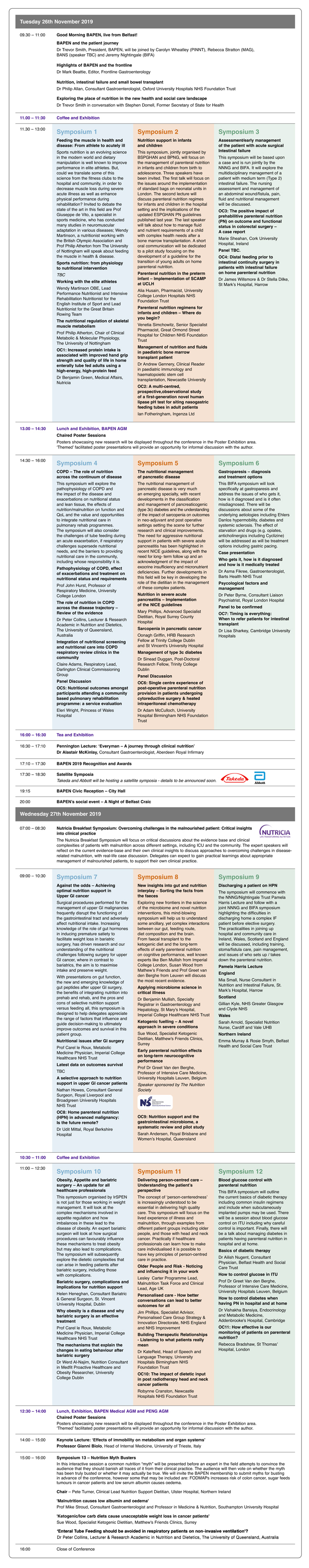 REGISTRATION FORM AND BOOKING DETAILS WILL BE AVAILABLE ON THE BAPEN WEBSITE: www.bapen.org.uk