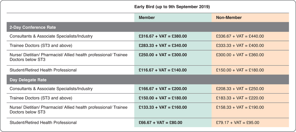 The Members Rate is available if your BAPEN subscription has been received at the time of receiving your registration form. The Student Rate is available to all pre and post graduate Students. The retired professional rate is open to any retired healthcare professional with an interest in nutrition.